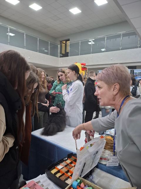 Колледж представил учащимся разнообразные мастер-классы: по определе-нию яиц домашних птиц; крупяной лабиринт; УЗИ-сканированию кролика, саженцы лесных пород.