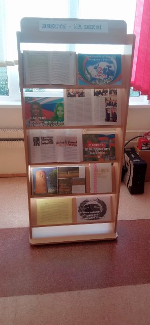Также в течение дня в холле главного корпуса работала выставка ко дню Единения народов Беларуси и России «Вместе мы едины», подготовленная работниками библиотеки колледжа Шуликовой А.Ю. и Бреус И.Л.