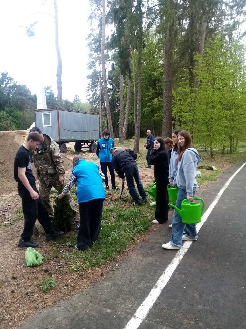 Благоустройство памятных мест в год 80-летия Великой Победы имеет особое значение! Учащиеся колледжа и работники Ляховичского лесничества высаживали деревья и убирали территорию на Кургане Славы.