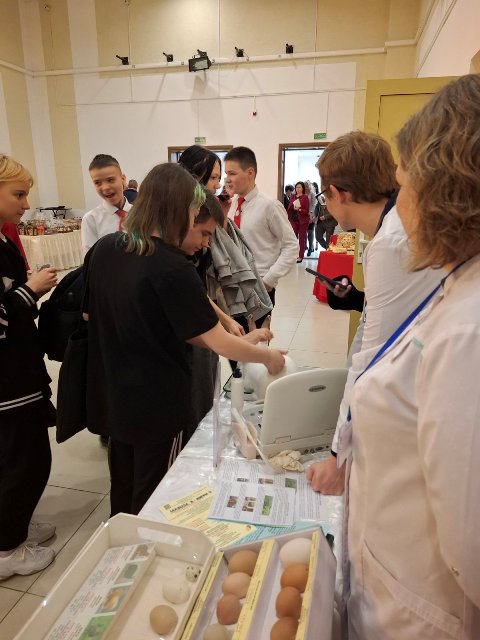 Колледж представил учащимся также мастер-классы: по определению яиц домашних птиц; различных видов трав, используемых для приготовления чайных напитков; УЗИ-сканированию кролика.