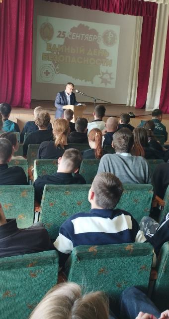В рамках Единого дня безопасности в колледже прошли следующие мероприятия: Учебная эвакуация, посещение выставочной техники на площадке стадиона, встреча с сотрудниками РОЧС, ГАИ и завершился день тематической дискотекой.
