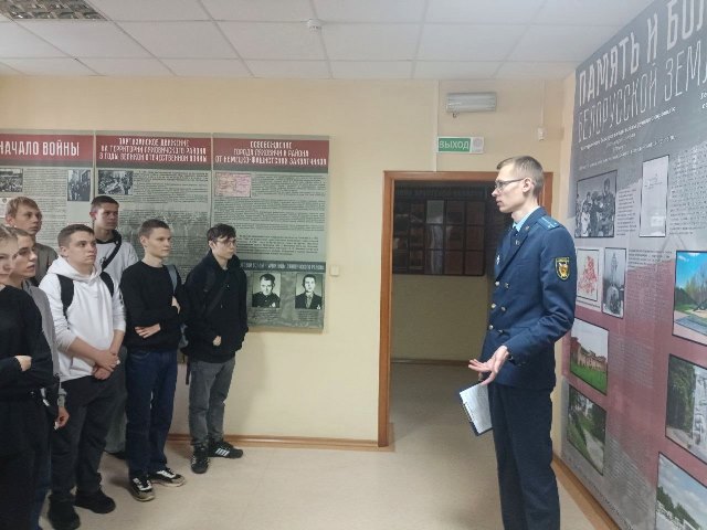 В преддверии Международного дня против фашизма, расизма и антисемитизма учащиеся 11 группы по специальности "Лесное хозяйство" посетили экспозицию, посвященную партизанскому движению и геноциду белорусского народа в годы Великой Отечественной войны в прокуратуре Ляховичского района. Экскурсию провел помощник прокурора Евгений Вильковский.