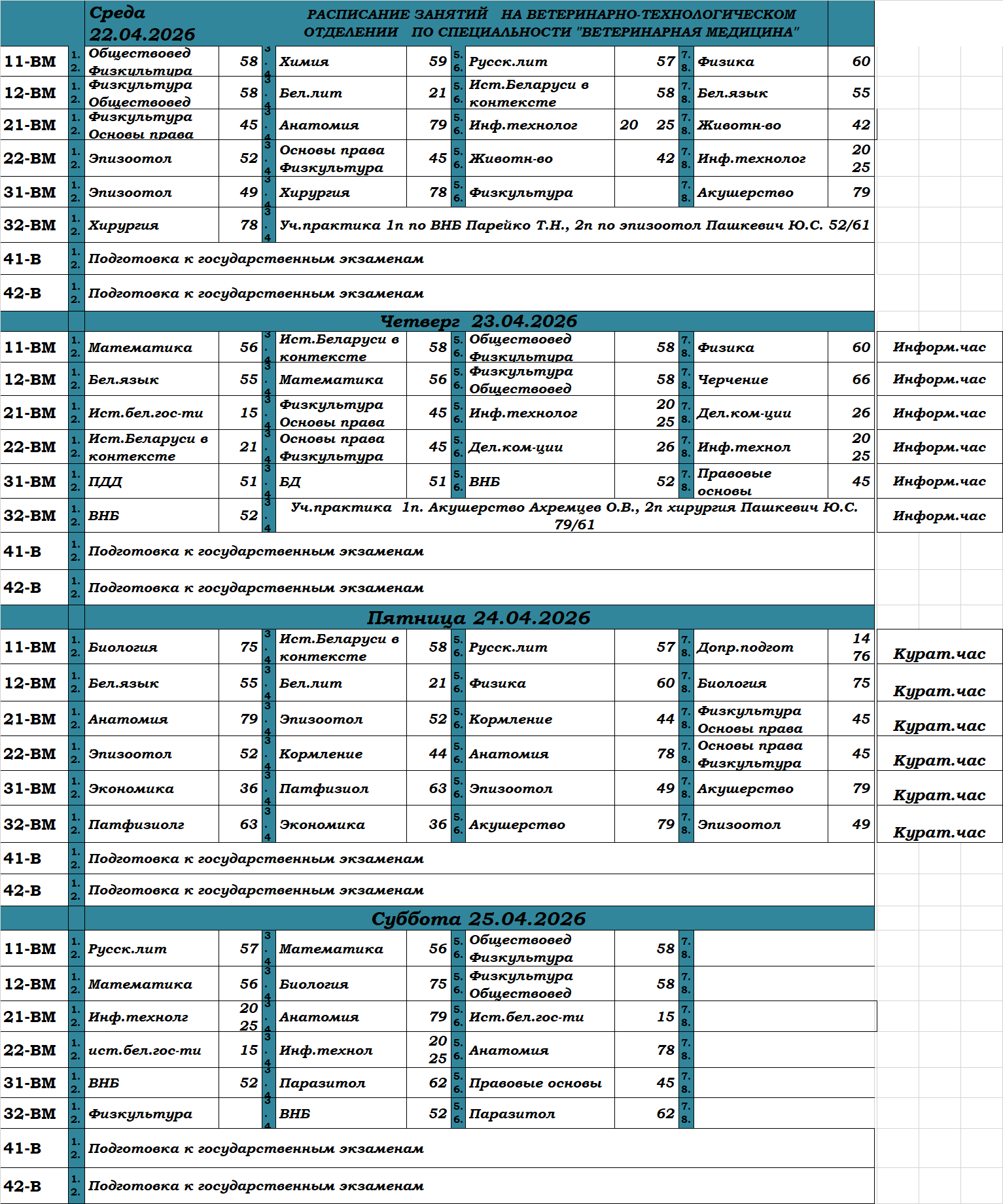 Изменения в расписании отслеживайте на информационном стенде!