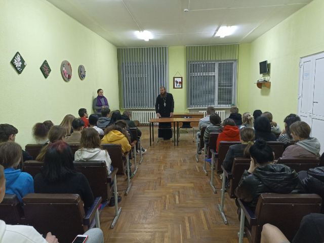 В общежитии колледжа состоялась встреча со священнослужителем.