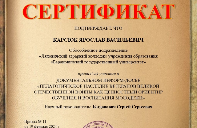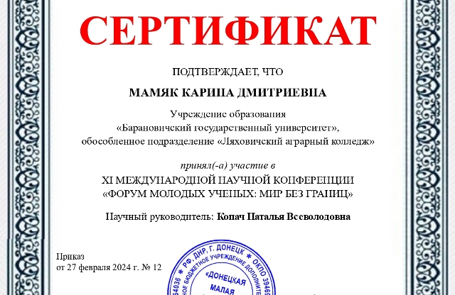 аграрный колледж" УО "Барановичский государственный университет"