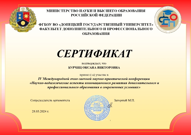 Участие в IV международной очно-заочной научно-практической конференции