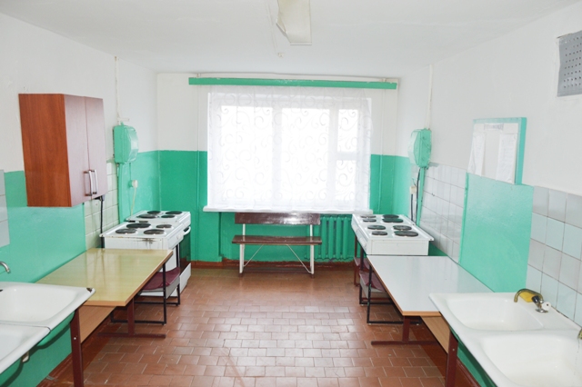 На кожным паверсе ёсць кухня, абсталяваная электраплітамі і мыйнымі ваннамі.